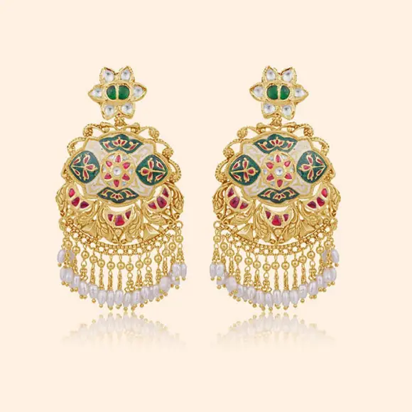 Diva Delight Gold-Plated Kundan & Pearl Chandbali Earrings for Women | Elegant Imitation Jewellery | Party Wear & Wedding Wear Statement Earrings