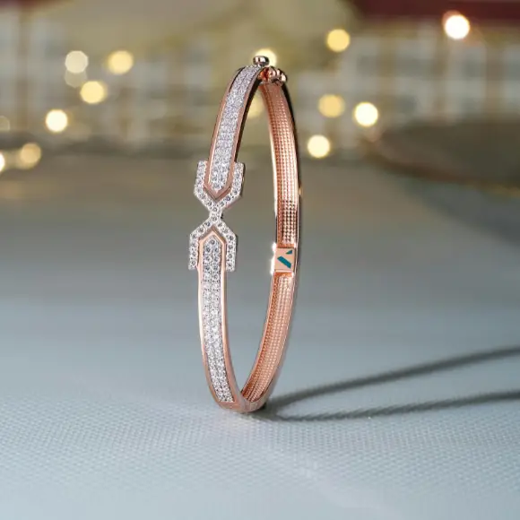 Diva Delight Rose Gold Crystal Stud Bracelet for Women | Elegant Minimal Bangle | Daily Wear Imitation Jewellery | Party & Office Wear Stylish Bracelet
